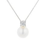 9ct White Gold Diamond And 6.5-7mm Fresh Water Pearl Pendant